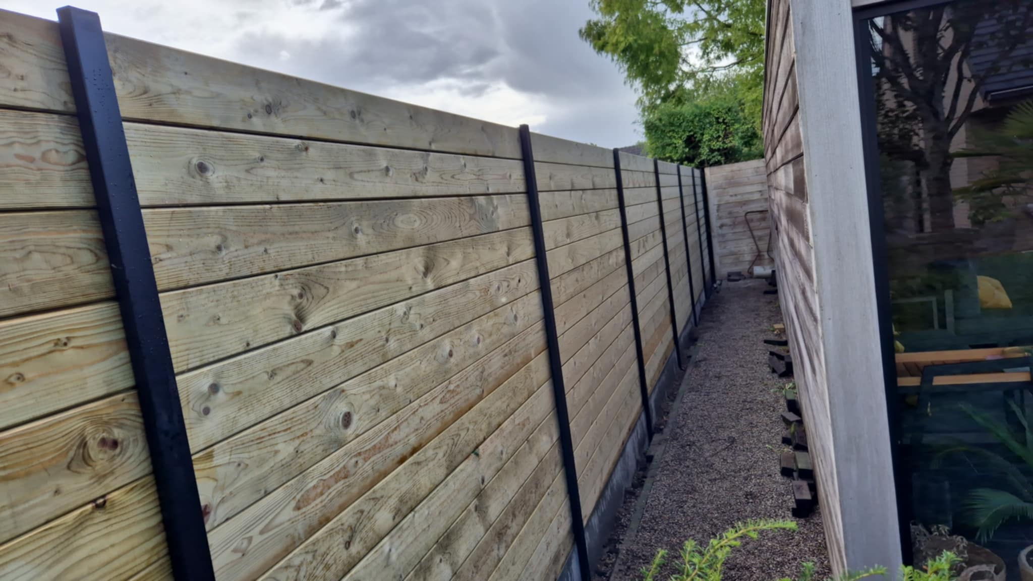Elk type tuinafsluiting is perfect te combineren met houten gleufpalen of aluminium palen, afhankelijk van de gewenste uitstraling en duurzaamheid. Zo kies je zelf of je een warme natuurlijke look of een moderne strakke afwerking wenst.